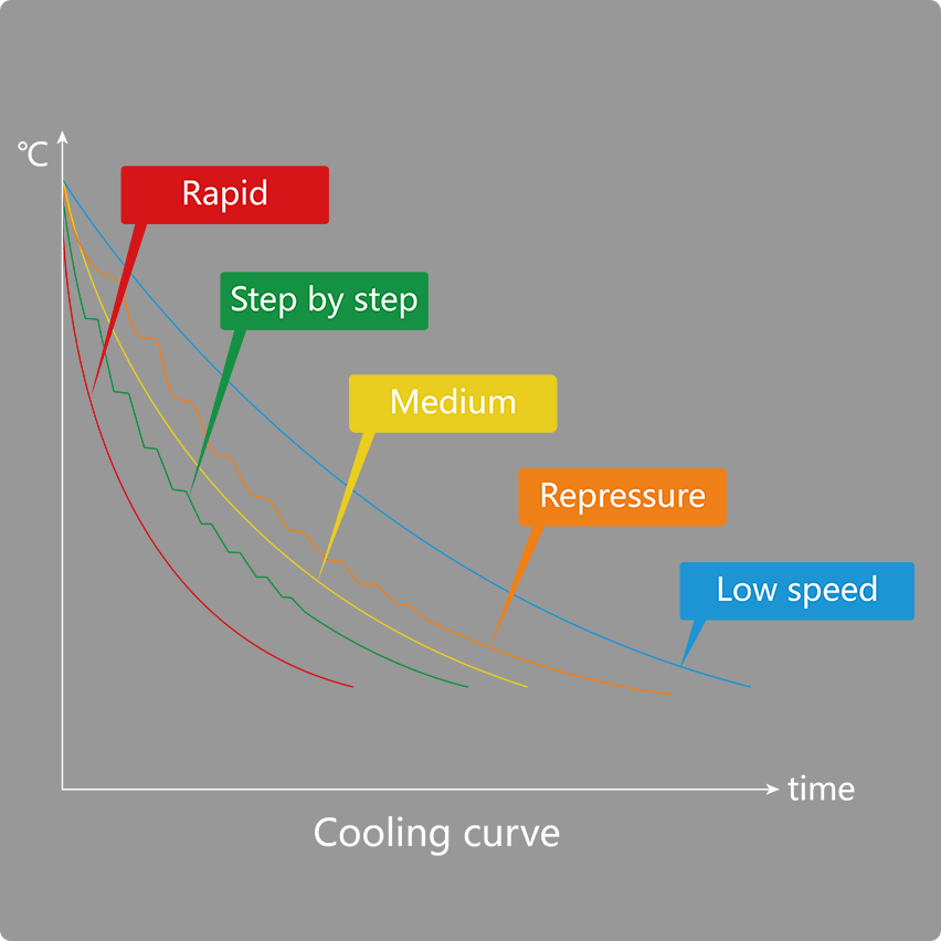 Предустановлено несколько процессов охлаждения, подходящих для различных типов продуктов. Параметры процесса могут быть настроены в зависимости от типа продукта.